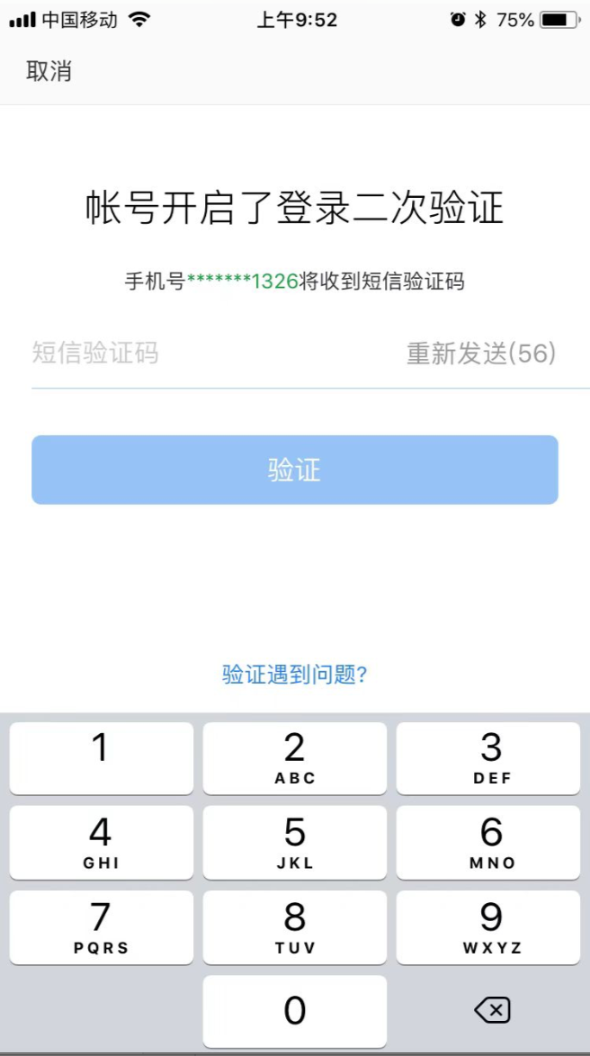 成员登录Webmail和邮箱大师客户端进行二次验证。以邮箱大师手机客户端为例,效果图如下。